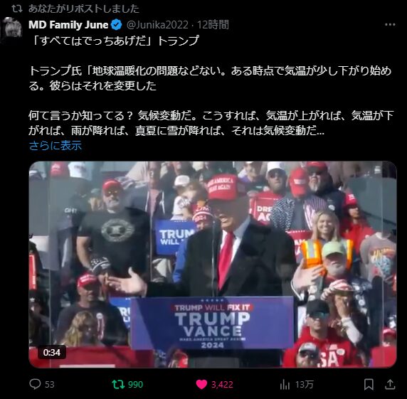 アメリカのトランプ大統領が地球温暖化説を否定して、再エネのバカバカしさを公言する。いいじゃないか。たしかに最近の気温は高くなっているけど、すべて人為的なものなのか、二酸化炭素CO₂が悪いのか。もしそうだとしても、中国やロシア、アメリカの現実を見たら、とても国連COPの提言なんかアホらしくなる。ちっぽけな日本が何をやっても、微々たるものでしかない。それが世界の現実だ。