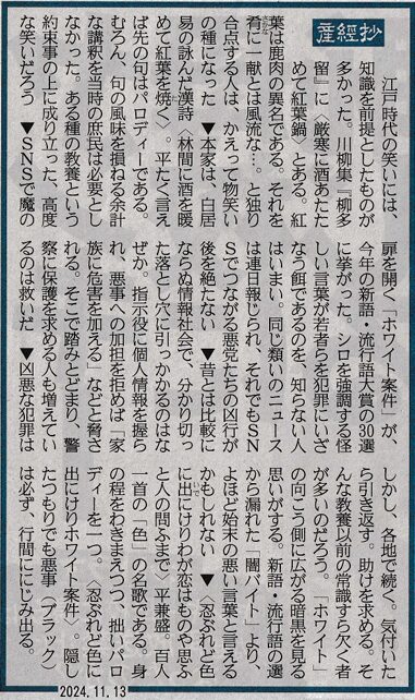 日本政府が、政治・行政が、嘘八百やっている。それがホワイト案件の正体だ。「闇バイト」も政治には付き物だ。国会中継を見ると、真っ黒けやな、と思わないか。これが日本人社会の反映よ。新鮮な、高潔な人は見当たらない。私は風力発電の被害を訴えているから、なおさらに彼らの無関心、政治利権に腹が立つ。制度疲労、人材が育たない。石破内閣の顔ぶれを見ると、日本の凋落を感じないか。