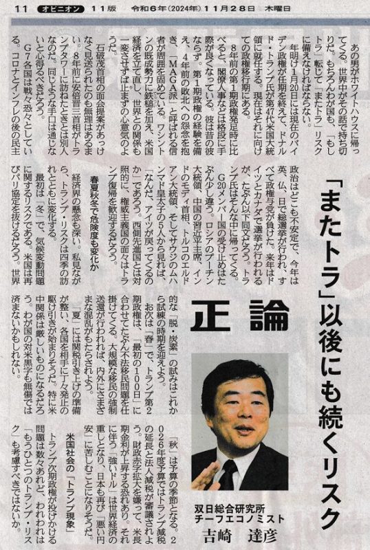 もしトラ、から「またトラ」へ。時代は確実に転換している。10年前、アメリカの研究者たちと話したことがあった。なぜかみんな民主党ばかりで、アレレッ、やばいな、と感じていた。【風力発電に反対したら法律でやられるんやで】と、その後の風力裁判を予測していたのだ。いやアメリカでは実際に現地の弾圧があったらしいのだ。風力事業と、法律事務所の並立、セットになって展開しているという。