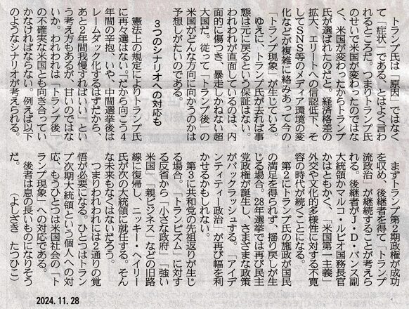 宗教行事も、お茶会も、すっかり廃れてしまっている。茶飯、漬物が美味しくてな、子供の頃に遊びに行ったら、お焦げのおにぎりを頂いたことがあった。まだ子供たちがたくさんいて、お寺の境内で遊びまわったものさ。もう60年になるか。随分と生きさせてもらった。お寺の役割はもうないのか。機能しないのか。添付記事には、トランプになったから、と云うんではなく、それがアメリカの「症状」だというのだ。