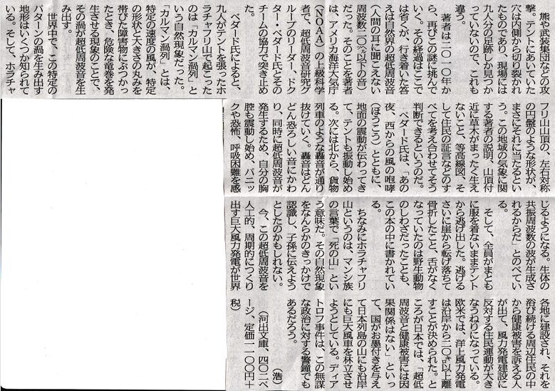 添付記事の遭難事件は、テレビでやっているから見た人も多いだろう。こんなに多くの人が一度に皆死んでしまう。地元では「死の山」と言われていた。低周波測定器で測ってみたら分かるけど、強風の時は、0~80Hzまで、すべて80dbを超える音圧になっている。卓越した尖がった成分も何も、耳をつんざく音圧が襲ってくる。台風の時がそうだよな。エライ暴風に、恐怖心を抱くやないか。